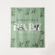 Tapisserie de baby shower moderne Cute panda unisex, avec un arrière - plan vert eucalyptus, deux mignonettes pandas mangeant des feuilles de bambou, feuilles d'aquarelle vert foncé, nom et date qui est facile à personnaliser.