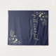 Remontez le temps avec notre décor de mariage 'Jeunes mariés' inspiré des classiques, avec une riche teinte bleu marine. Orné de délicates dentelles florales dorées et d'une écriture calligraphique élégante, il crée un cadre charmant pour capturer des souvenirs intemporels de votre jour spécial, alliant élégance et nostalgie sans effort.