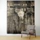 Tête de crâne de taureau de pays occidental avec cornes fond de photomaton de réception de mariage de style vintage. Décoration de mariage de conception inspirée par un cowboy en bois de grange rustique. Signe d'art raffiné de bison brun sépia antique. Recherchez les produits correspondants dans la collection de ma boutique. Image copyright Marg Seregelyi Photographie.
