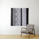 Tenture Dentelle blanche ornementale, fond noir isolé.