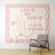 Allons les filles, tapisserie personnalisée de thème de cowgirl western pour enterrement de vie de jeune fille avec motif à rayures ondulées rose pastel et crème avec des bottes de cowboy et un chapeau de cowboy, parfaite comme toile de fond pour photos de fête de bachelorette. Personnalisé avec votre nom et la devise "dernier rodéo". Célébrez votre douche nuptiale avec style avec le thème parfait de fête western country rétro, le thème parfait pour l'amoureuse des chevaux, thème de cowgirl mariée western sauvage vintage et ses demoiselles d'honneur.
