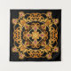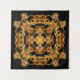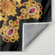 Design d'écharpe en soie avec pierres de rubis et rouleaux dorés sur arrière - plan noir