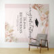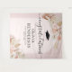 Tapisserie bohème élégante de fin d'études avec un fond rose poussiéreux avec une arche florale, feuilles de palmier séchées du désert aquarelle, herbe de pampas, un chapeau de diplômé, le titre "félicitations", leur nom, école et année de classe.