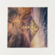 Croix d'or fière avec montagnes désertiques avec design typographique.