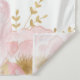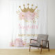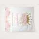 Ce design présente une couronne royale scintillante en faux or pailleté ornée de pivoines en aquarelle rose pâle et de confettis.