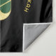 This stylized illustration features a dreidel colored yellow, purple, and green against a stark black background. A curved gold text above it reads "DREIDELS AND MIRACLES OF HANUKKAH", highlighting the traditional toy and the spiritual celebration of the Jewish holiday. The design has a clean, geometric aesthetic with a touch of vintage texture.