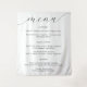 Une bannière de menu mariage en tissu simple et élégante avec l'en-tête "menu" en police de style calligraphie noire. Personnalisez avec les détails de votre menu mariage en police serif noire.