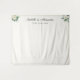 Elevate your wedding decor with this stylish wedding backdrop, perfect for a garden reception or modern indoor ceremony. Featuring delicate floral corner accents and elegant script typography, the fabric backdrop is customizable with the couple's names and wedding date.