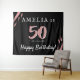 Elégant Pink Black 50th Birthday Party fond. Utilisez les tapisseries comme toile de fond pour la fête du 50e anniversaire. Personnalisez-le avec votre nom, votre date et votre âge.