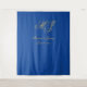 Ces élégantes tapisseries de mariage personnalisées comprennent un script de calligraphie en faux or pour vos initiales monogrammes, noms et date mariage pour personnaliser sur un arrière - plan bleu saphir. Meilleurs voeux pour votre mariage et mariage ! Conçu par Susan Coffey.