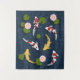 Belle illustration vectorielle minimaliste de koi japonais coloré nageant parmi les nénuphars dans un étang. Koi est une carpe de variété ornementale aux couleurs vives domestiquée au Japon.