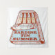 Illustration vectorielle amusante d'une boîte de sardines. Il a l'air d'un super héros, logo pop art. Le texte se lit SARDINE TIN SUMMER. Il s'agit d'un design alimentaire pour toute personne qui aime le poisson en conserve ou en conserve, ou qui voyage et mange à moindre coût pour le faire tout l'été.