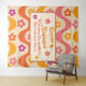 Ceci est une tapisserie personnalisée pour une soirée de bachelorette rétro fleurie, avec des fleurs rétro très mignonnes sur des vagues groovy abstraites en rose, orange, jaune et violet. Vous pouvez modifier les détails et la rendre vôtre en utilisant le modèle personnalisable.