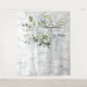 Créez les photos parfaites pour votre mariage botanique bohème moderne, avec cette superbe tapisserie de fond en aquarelle botanique de verdure d'eucalyptus bleu poussiéreux clair, avec un fond en marbre de Carrera faux, éclaboussure d'aquarelle et une typographie de script manuscrit tendance. Fait partie d'une suite d'invitations de mariage. Copyright Elegant Invites, tous droits réservés.