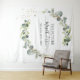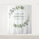 Eucalyptus Botanique Feuillage et Feuille d'Or Faux Aquarelle Printemps ou Été Mariage Future Mme. Enterrement de Vie de Jeune Fille Toile de fond pour Photobooth - comprend une belle et élégante typographie script avec feuillage vert moderne pour la célébration spéciale du jour du Mariage.