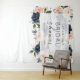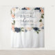 Cette magnifique création à thème floral présente des fleurs aquarelles roses et bleues marine au centre avec un rectangle clair par-dessus.