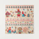 Ours, renard, coq et poulet au poulet, maisons féeriques, forêt, plantes sur un arrière - plan beige. Conception de vacances pour les textiles et vêtements de maison. Les animaux de la forêt dans un village de conte de fées - Un délice de Noël de rêve! Fairy tale fun ! Animaux et maisons de lunettes dans la forêt. noël, motif, illustration, arbre, forêt, floral, étoiles, sans soudure, poulet, rouge, vacances, tissu, ornement, oiseaux, emballage, ours, set, textile, décoration, coq