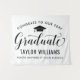 Élégant panneau de fond de fête de graduation pour féliciter et célébrer votre diplômé avec style ! La conception comporte une casquette de diplômé, "Diplômé" en écriture cursive et un texte personnalisé moderne qui peut être personnalisé avec le nom et l'école du diplômé. Les couleurs noir et blanc peuvent être personnalisées.