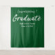 Bannière de bienvenue de félicitations pour diplômé moderne, simple et minimaliste, arrière-plan de mur photo. Conçu avec une typographie de police de pinceau manuscrit blanc tendance sur fond vert pour correspondre aux couleurs de l'école, du collège ou de l'université. Personnalisez les détails de l'école ou du collège et l'année de classe.
