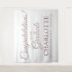 Félicitations à notre diplômé de la typographie de script personnalisé élégant Signer et la fête de graduation arrière. vous pouvez le customiser avec le nom, l'école, la graduation, l'année de classe, etc Texte en or faux rose entièrement personnalisable, blanc solide arrière - plan uni. Toutes les couleurs sont modifiables. Banderole moderne élégante de diplôme de faire-part de typographie, idéal pour les enfants et les adultes. Personnalisable pour la maternelle, l'école primaire, le collège, le lycée et l'université. C'est une excellente façon d'afficher un faire-part de graduation. Consultez le reste de la collection pour obtenir des cadeaux de fin d'études, des faveurs, des fournitures de fête et des articles de décoration supplémentaires.