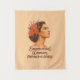 Une femme avec des roses et de la lavande dans les cheveux regarde avec confiance sur le côté. Le texte "Empower Women Empower the World" est affiché avec élégance.