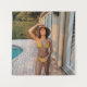 Tenture Femme en bikini jaune debout sur le flo de brique