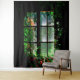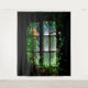Vous voulez une fenêtre supplémentaire chez vous ? Un jardin de campagne idyllique avec des plantes verts et des fleurs rouges. Cadre vert foncé et noir.