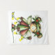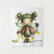 Festive winter fairy holding a string of yellow lights is dressed in green and red attire with cute holly leaf and berry accents.