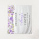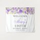 Accueillez vos invités à votre fête d'anniversaire 100 ans avec cette élégante tapisserie de bienvenue aux roses violettes et au feuillage. Un excellent endroit pour des photos de famille aussi ! Elle se coordonne avec la collection Rustique Floral Botanique Violet pour les 100 ans.