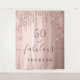 Un tapis de fête d'anniversaire tendance et glamour pour 50 ans (ou tout âge). Un fond de couleur rose gold girly orné de gouttes de paillettes fausses rose gold et rose, effet de peinture qui coule. Avec le texte : 50 et fabuleuse. Personnalisez et ajoutez un nom. Texte de couleur marron. Le mot Fabuleuse est écrit avec un style de lettrage manuscrit moderne avec fioritures.