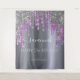 Une tapisserie pour une fête d'anniversaire 21 ans (ou tout âge) girly et glamour. Un fond aspect argenté avec des gouttes élégantes violettes et paillettes aspect argenté, effet de peinture qui goutte. Le texte : le nom est écrit en blanc avec un style de lettrage manuscrit moderne avec des fioritures. Pour garder les fioritures, il suffit de supprimer le nom exemple, laissez les espaces ou émojis devant et après le nom. Personnalisez et ajoutez un nom, âge 21 et une date. Peut être utilisé comme décoration murale pour la fête ou comme toile de fond pour un photomaton.