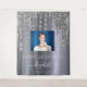 Une tapisserie pour une fête d'anniversaire de 21ème anniversaire (ou de tout âge) fillette et glamour. Un arrière - plan faux argenté avec d'élégantes gouttes de parties scintillant faux argent, la peinture goutte à goutte. Personnalisez et ajoutez votre propre photo de haute qualité de la fille d'anniversaire. Le texte : Le nom est écrit en blanc avec un script de style moderne écrit à la main avec des swases. Pour que les swashes ne suppriment que le nom de l'échantillon, laissez les espaces ou émoticônes devant et après le nom. Tempates pour un nom, âge 21 et une date. Peut être utilisé comme décor mural pour la fête ou comme fond de cabine photo.