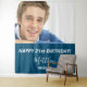 Une tapisserie pour une fête d'anniversaire de 21 ans (ou tout autre âge) pour les mecs. Un arrière - plan bleu classique. Personnalisez et ajoutez votre propre photo de haute qualité du garçon/homme d'anniversaire. Le texte : Le nom est blanc avec un script de style à la main moderne. Tempates pour un nom, âge 21 et une date. Peut être utilisé comme décor mural pour la fête ou comme fond de cabine photo.