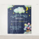 Cette tapisserie de fête de bébé ou toile de fond pour photomaton, marine et neutre, présente la phrase "Twinkle twinkle, little star, do you know how EXCITED we are?" (Scintille, scintille, petite étoile, sais-tu combien nous sommes EXCITÉS ?) dans un script tendance à la main avec des étoiles dorées, des nuages roses, une lune et un renard de la forêt avec des ballons. C'est parfait pour la fête de bébé du couple pour une petite fille ou un petit garçon, et est facile à personnaliser avec le nom de votre bébé.