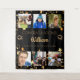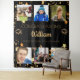 Une tapisserie pour un diplôme célébrant sa vie avec un collage de 6 de vos photos de haute qualité d'elle, de ses amis, de sa famille, de son intérêt ou des animaux de compagnie. Personnalisez et ajoutez son nom et un texte/année. Texte doré. Une couleur arrière - plan noire chic et classique. Son nom est écrit avec un script de style moderne écrit à la main. Décoré de faux étoiles dorées coulant. Parfait comme décoration murale de fête, fond de cabine photo, bannière d'accueil et gardien.
