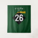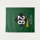 Décoration de fond pour photos de fête de fin d'études créative pour les diplômés de la promotion '26 avec chapeau noir et or sur fond vert.