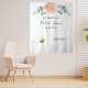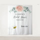 Bannière de baby shower de style élégant, classique et moderne, tapisserie. Décorée d'une grande pivoine aquarellée rose et or rose, de fleurs et de verdure d'eucalyptus. Avec le texte : Bridal Shower écrit avec un script moderne de style lettrage à la main de couleur noire. Personnalisez et ajoutez le nom de la mariée et une date. Une abeille souriante mignonne et heureuse et le texte : Bride to bee !