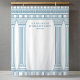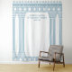 Fond de fête à thème toge grecque ou romaine avec des piliers de temple minimalistes et un motif méandre grec bleu. Produit personnalisable pour une célébration mémorable. Parfait pour votre fête sur le thème de la Grèce antique ou de la Rome antique.