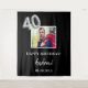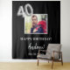 Une tapisserie pour une fête des 40 ans. Fond noir, texte blanc. Personnalisez et ajoutez une photo de haute qualité, du texte, un nom et une date. Le numéro 40 est écrit avec une police de style ballon en faux argent. Peut être utilisé comme décoration murale pour la fête ou comme toile de fond pour photomaton.
