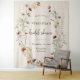 Tapisserie de douche nuptiale Boho Wildflower. Cette tapisserie élégante et élégante de douche nuptiale en toile de fond est ornée de magnifiques fleurs sauvages peintes à la main, disposées comme une jolie couronne et un élégant script de calligraphie parfait pour les mariages du printemps, de l'été, de l'automne et de l'hiver.