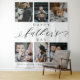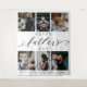 Tapisserie de collage de photos de famille personnalisée pour la fête des pères, arrière-plan photo pour afficher vos photos et souvenirs de famille spéciaux. Notre design présente une grille de collage de 6 photos avec "Joyeuse fête des pères" conçu dans un style d'écriture manuscrite noire et une police serif. Personnalisez avec vos noms. Remarque : la couleur du texte 'Joyeuse fête des pères' peut être modifiée pour répondre à vos préférences. Cadeau idéal pour papa le jour de la fête des pères.
