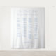 Personalized Find Your Seat Fabric Blue Wedding Seating Chart Tapestry is a stylish and elegant way to guide guests on your big day. Designed as a statement wedding seating chart for modern celebrations, it works beautifully as part of your reception décor and makes a stunning wedding seating chart display. Perfect for couples looking for wedding seatint chart ideas, this fabric seating chart is ideal for seating charts that feel elevated and timeless, and it’s a truly creative seating chart wedding option. It pairs perfectly with a blue wedding theme, dusty blue wedding, blue wedding, light blue wedding, dusty blue wedding theme, something blue wedding, light blue wedding theme, baby blue wedding, baby blue wedding theme, french blue wedding, coastal blue wedding, and soft romantic palettes.