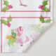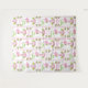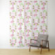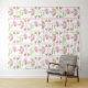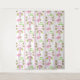 Une tapisserie avec un motif de noël tropical fantaisiste. Un flamant rose fantaisie avec une jambe levée. Portant un chapeau de santa rose et un saint saisonnier. Holly avec des baies ornent également les coins. Bouquet fleuri avec sucres de canne au-dessus de la tête. Joyeux Noël écrit en vert gras.