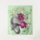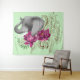 Profil latéral d'un éléphant avec le tronc vers le haut. Fuchsia Lotus fleurs et henné dans un décor vert