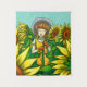 Une fille dans un champ de tournesols pendant une chaude après-midi d'été.