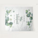 Grande décoration murale de fête et bannière pour une douche de mariée moderne et tendance sur le thème botanique. Avec des feuillages d'eucalyptus sur fond aquarelle rose. Modifiez facilement les détails en cliquant sur le bouton "Personnaliser" ci-dessus.