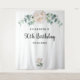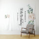 Bannière de fête d'anniversaire 50 ans (ou tout âge) de style floral élégant, classique, moderne, tapisserie. Décoré de pivoines aquarellées blanches, fleurs et verdure d'eucalyptus. Avec le texte : 50e anniversaire écrit avec un style d'écriture manuscrite noire moderne et grande. Personnalisez et ajoutez un nom et une date.