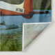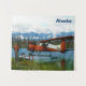 Un pilote de brousse se tient près de son hydravion DHC-2 Beaver de Havilland Canada sur la rive d'un lac à l'extrême nord; les montagnes et les arbres sont au loin. Le texte personnalisable "Alaska" apparaît également. Cette image provient, en partie, d'une photo du US Fish and Wildlife Service.