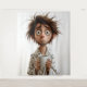 Illustration fantaisiste et relatable d'un homme débraillé en peignoir serrant une tasse de café aux yeux larges et fatigués. Ses cheveux désordonnés et son expression perplexe capturent parfaitement le chaos des premiers matins avant que la caféine ne prenne effet.