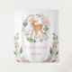 Ce design élégant présente une illustration d'un adorable faon, de roses roses et de verdure moderne à l'aquarelle dans des tons doux de vert et d'or. Personnalisez la tapisserie avec votre propre texte en cliquant sur le bouton "Personnaliser".